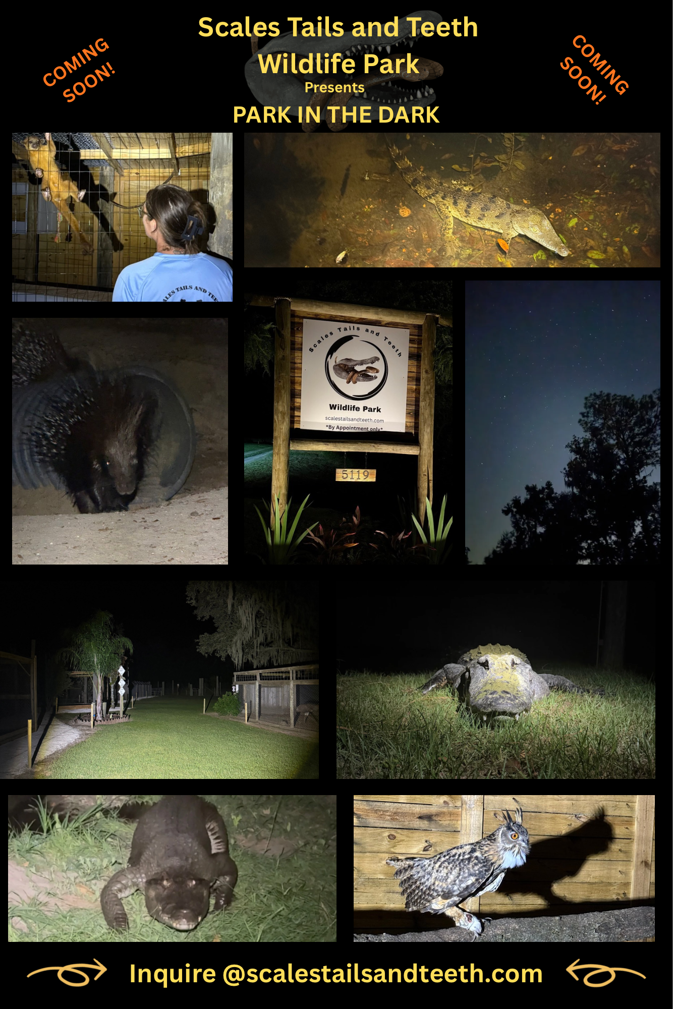 Experience the ultimate wildlife adventure, where every path leads to a new discovery! We specialize in bringing you up close and personal with animals that are often feared, but always misunderstood. From the crushing power of an apex predator’s jaw to the silent, golden eyes of a nocturnal hunter. Scales Tails and Teeth Wildlife Park isn’t your typical crowded zoo. We are private wildlife park dedicated to intimate, educational encounters between humans and our resident animals. By operating on an appointment-only basis, we ensure a peaceful environment for our animals and a VIP, crowd-free experience for you.